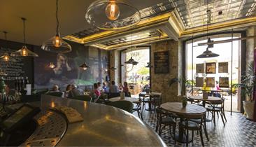 For lunch or dinner enjoy home-made chicken liver parfait or share a tarte flambée. Sample main courses such as slow-cooked boeuf bourguignon, steak frites and light fish dishes. Finish your meal the typically French way, with carefully chosen, imported French cheeses or home-made crème brulée.