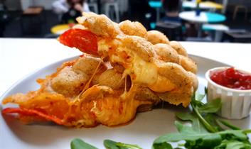 Delicious homemade Bubble Waffles (sweet & wavoury) are found in Plymouth's only Indoor Market. American Pancakes (Fri & Sat AM) Vegan Gluten Free options always available. Luxury Milkshakes, teas and coffees.