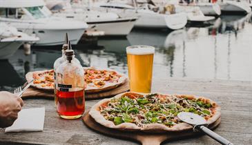 Find us in the heart of the Barbican. We’ve rested our hat in a lovely little nook of the area. Surrounded by cobblestones, overlooking the waterfront, we’re the ideal spot for kicking back and taking it easy. Serving up fresh, house-made sourdough pizza alongside an entirely British drinks menu - including our stacked lineup of West Country ciders and craft brews, we’re here to show you that whether you’re catching up with a few mates, enjoying some long-awaited family time, or simply after a decent spot to take a date, we’ve got the perfect setup, whether that be inside, or, if the great British weather allows, out on our terrace! Cheers to that.