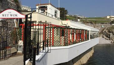 There are steps from the main road to the restaurant, however customers will accessible needs, or with prams and pushchairs, can go down towards The Waterfront Pub and turn left at the bollards at the end onto West Hoe Pier, carry on round and you come to the bottom of Wet Wok steps.