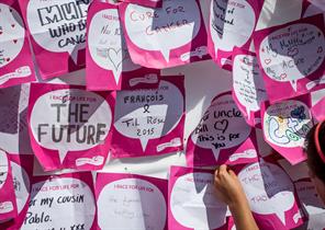 We get people moving – and raising money for vital cancer research – all around the UK. We've been raising funds and changing lives for more than a quarter of a century. At our first event in Battersea in 1994, 750 female participants raised £48,000. Since then, Race for Life has grown into a series of hundreds of events across the country, raising over £970m for life-saving treatments. Today, people of all genders and ages can join in the Race for Life. It's a race for everyone. For you, your friends and family. Together.
